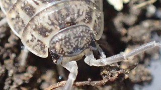 原産地が地中海沿岸の外来種で愛知県以西で分布域を広げています。体長が20mmに達することがあり大型のワラジムシです。灰褐色ですが光沢があり細かく左右対称の紋様を有します。大阪や兵庫での生息密度が高く、その他、東京や神奈川の一部の地域で点在している程度です。